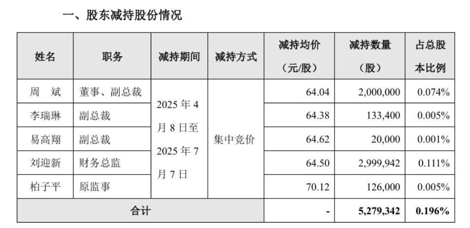 2025年7月8日,汇川发布公告称,公司董事兼副总裁周斌、副总裁李瑞琳、副总裁易高翔、财务总监刘迎新及原监事柏子平,在4月8日至7月7日历间,通过长入竞价样式共计减持527.93万股公司股份,共计套现约3.4亿元。
